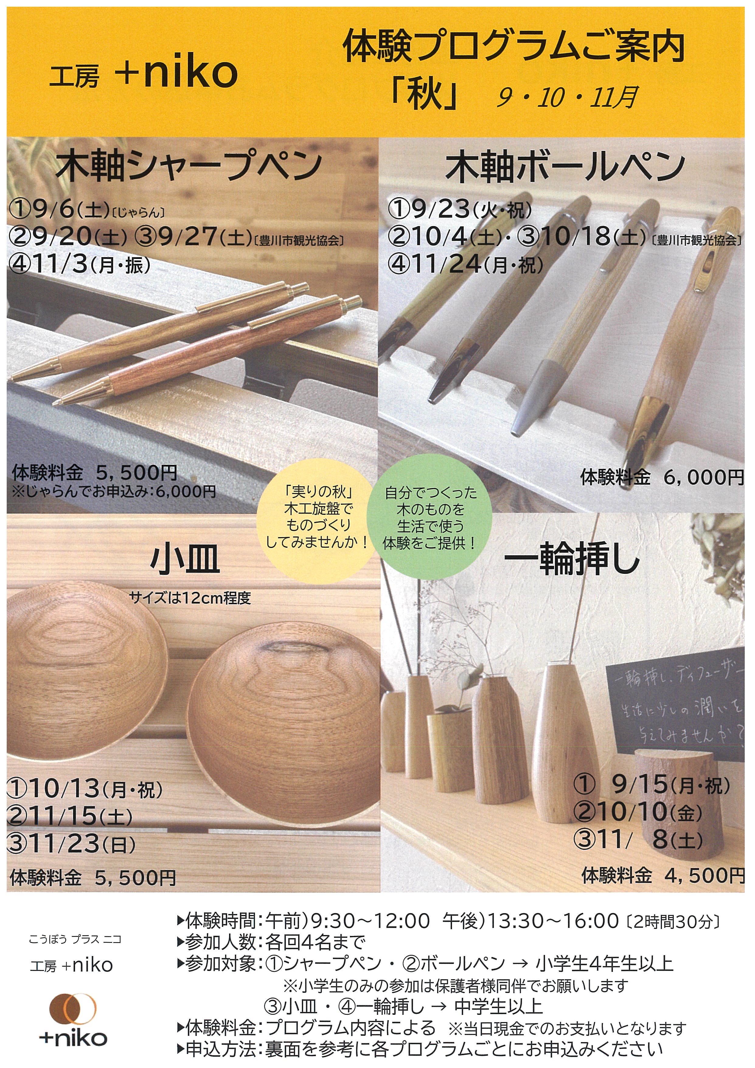 「工房 +niko」は木工旋盤を使用して、木製品を製作する工房です